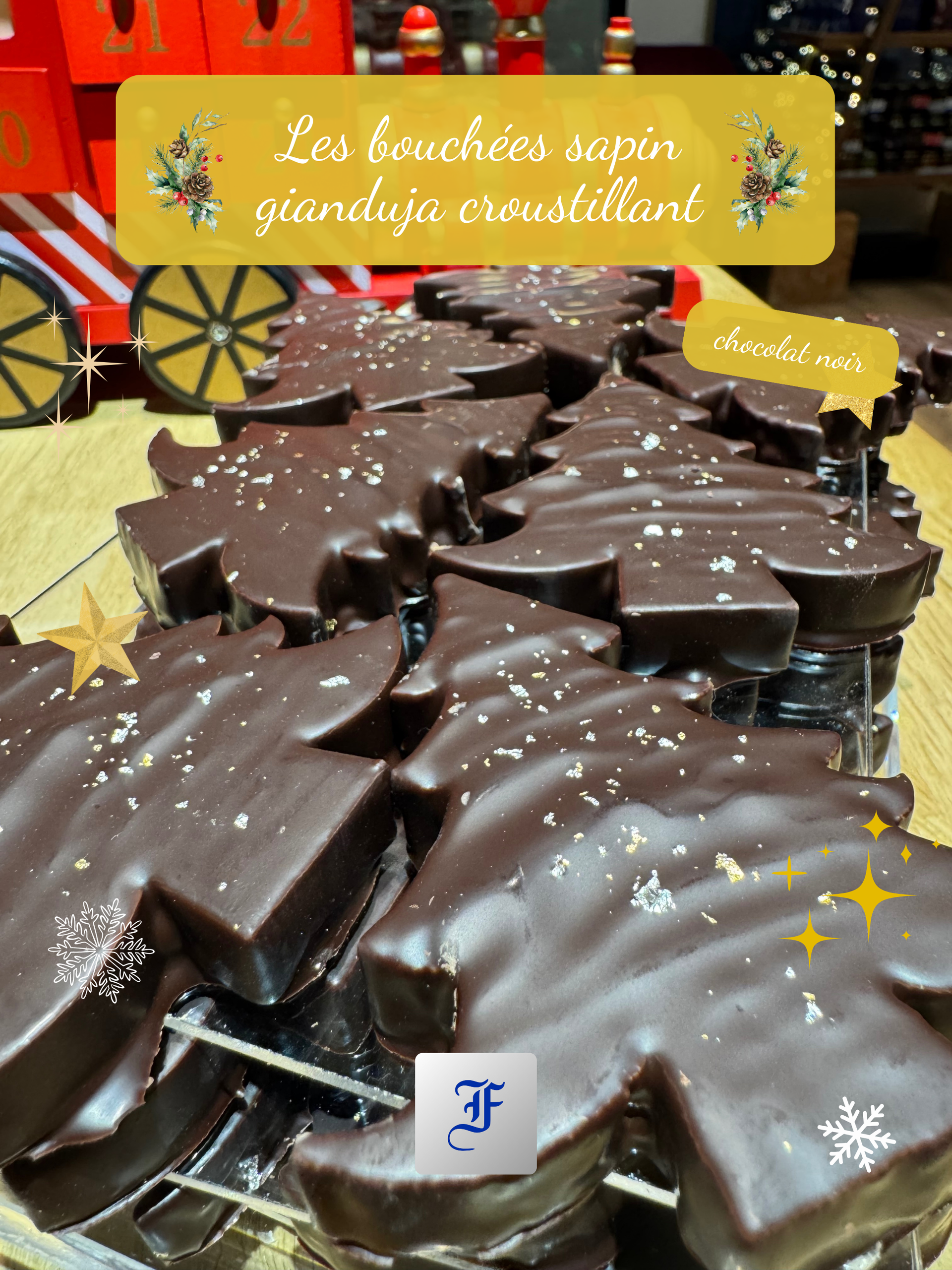 Une sélection de spécialités provenant d'artisans maître chocolatiers sélectionnés : ganaches, pralinés, liqueurs, tablettes, fruits secs enrobés et d'autres suprises...